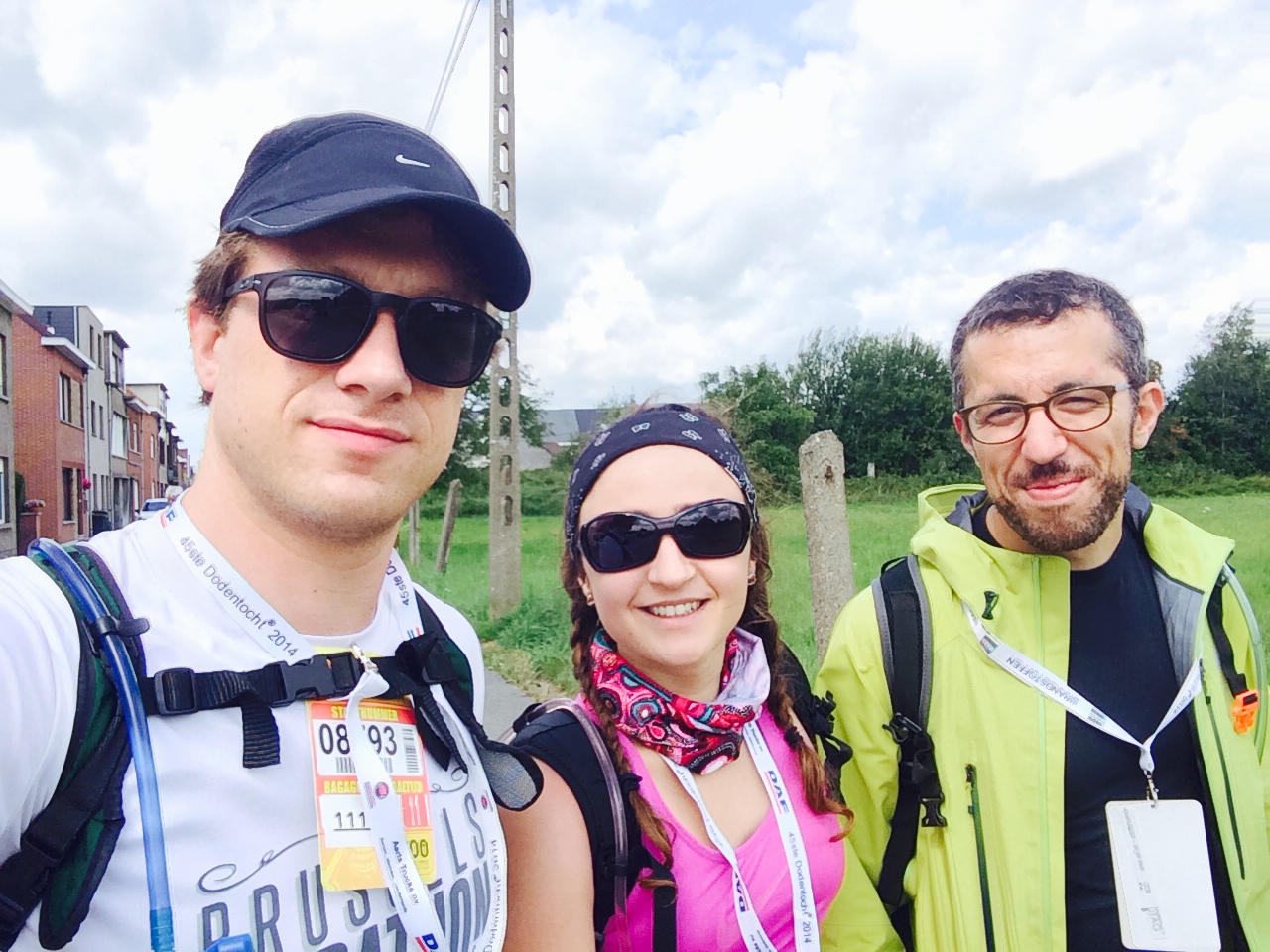 The walk was going to start on a Friday evening at 9pm, and most of us took the day off to keep our legs up and relaxed. The afternoon was warm and sunny but the forecast was on storms and heavy rain. And as unreliable as the weather forecast usually is in Belgium, so reliable it was that evening. Not lying nor exaggerating, at 21:00 sharp everyone started moving and so did the skies. Heavy rain pouring down on us, and it should not stop until 2 or 3 in the morning – I don’t recall that well. We tried for 20-30min to find shelter under some roofs, phone booths, umbrellas but realised soon enough that this storm was far from being over and that we had to get moving if we wanted to complete the course within the time limit of 24h (side-comment: my good-old leather hat from Australia was a real treat here!).